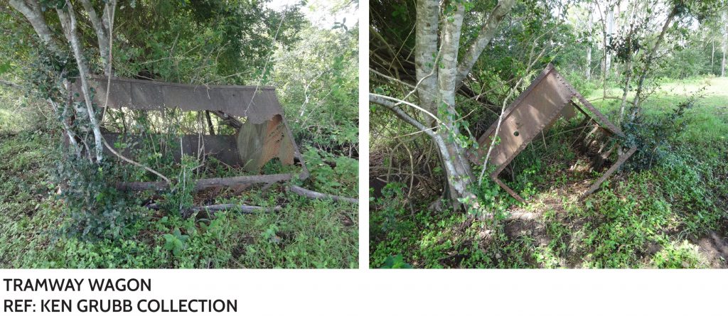 Very little now remains of Town Marie on original Portion 4. The original area of the meatworks and sawmill, now on private property on the south side of the Warrego Highway, is now grassland with only some bricks and rusted tram wagons remains along the banks of the Bremer River. The residential estate around Phar Lap Parade and Archer Court in Karalee, on the south side of the Warrego Highway, now occupy the area of the original homestead and workers houses at Town Marie. To the west the old coke ovens and old power station building are now also located on private property occupied by a transport company.